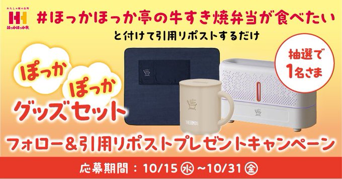 賞品:ほっかほっか亭オリジナルのぽっかぽっかグッズ(1名様)