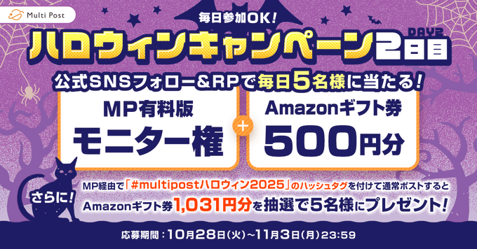 Multi Post公式Xアカウントをフォロー&キャンペーン対象ポストをリポストしてご応募ください。