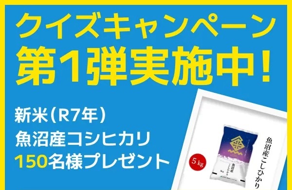 魚沼産コシヒカリ5kgを150名様にプレゼント 2025.10.30JAグループ特設ウェブサイト「国消国産」を考える2025 賞品:魚沼産コシヒカリ5kg(150名様) 締切:2025年11月17日(月)クイズに答えてご応募ください。※詳細はキャンペーンページにてご確認ください。応募はこちらから