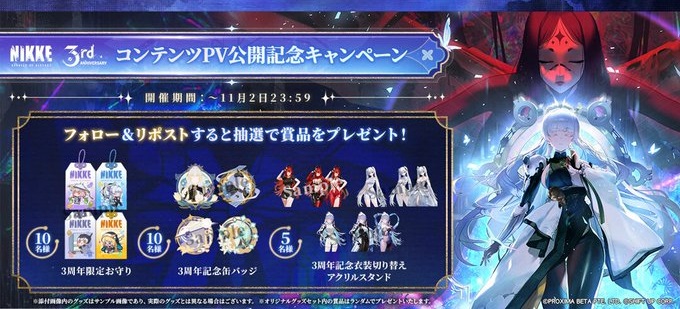 賞品:NIKKE3周年限定オリジナルグッズ(25名様)
