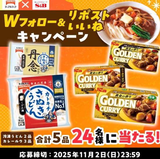 テーブルマーク × エスビー食品 「冷凍うどん」と「カレールウ」プレゼントキャンペーン