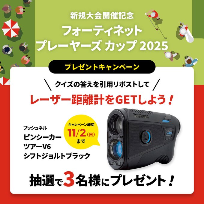 賞品:ブッシュネル ピンシーカーツアーV6シフトジョルトブラック(3名様)