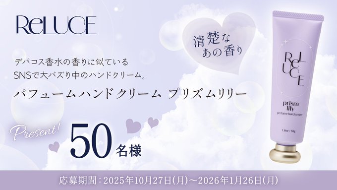 賞品:リルーチェ パフュームハンドクリーム プリズムリリー(50名様)