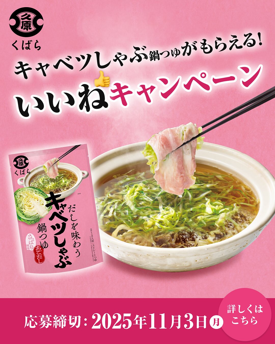 賞品:だしを味わう キャベツしゃぶ 鍋つゆ(10名様)