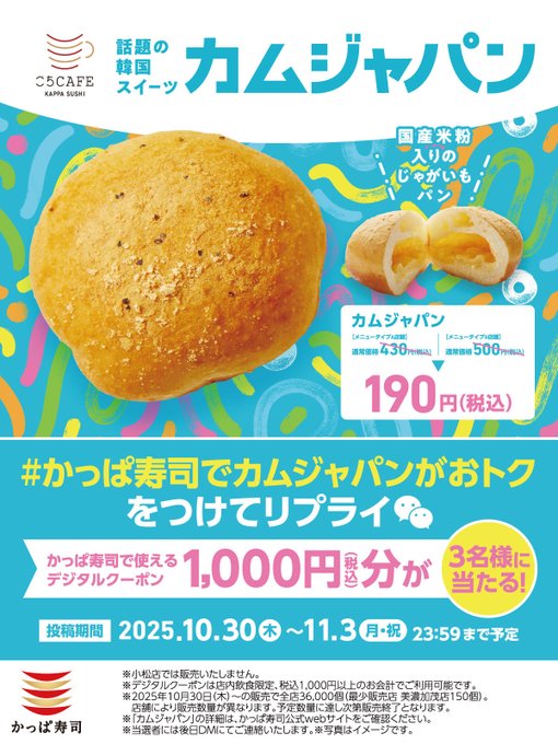 投稿に #かっぱ寿司でカムジャパンがおトク をつけてリプライ💬