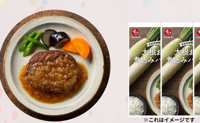 賞品:北杜市明野町で育った大根おろしの煮込みハンバーグ 5個×10名様