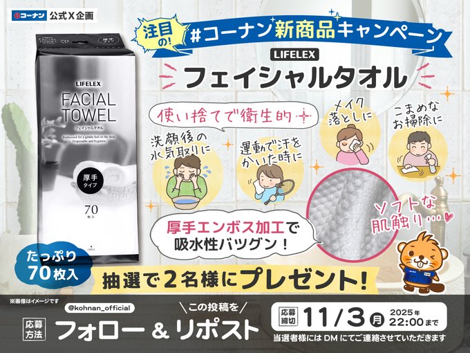 賞品:LIFELEX フェイシャルタオル(2名様)