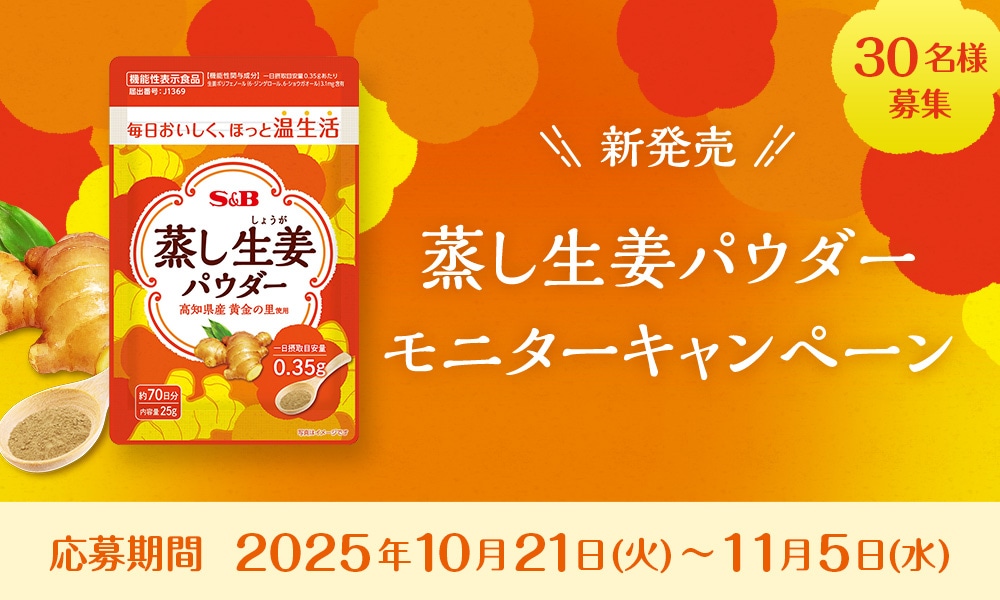 エスビー食品公式通販 お届けサイト‐新発売♪蒸し生姜パウダーモニターキャンペーン