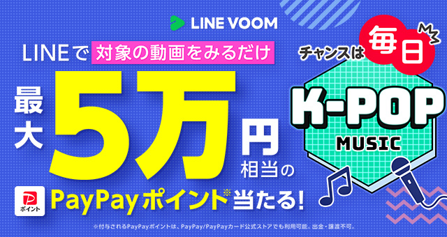 LINE VOOMでK-POPの動画をみるとPayPayポイント最大5万円相当が当たる!
