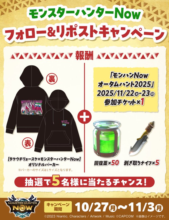 【X懸賞】オリジナルパーカーとオータムハントチケットなどを5名様にプレゼント