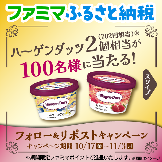 賞品:ハーゲンダッツ2個相当の期間限定ファミマポイント702円相当(100名様)