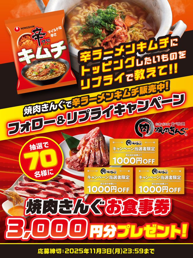 辛ラーメン‐焼肉きんぐコラボ記念キャンペーン第2弾