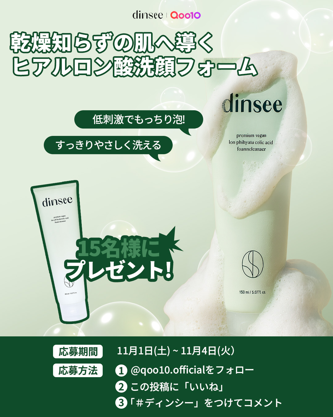 賞品:dinsee ヒアルロン酸洗顔フォーム(15名様)