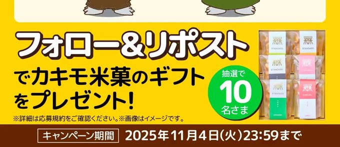 【X懸賞】カキモ米菓のギフトを10名様にプレゼント 2025.11.02足利銀行‐パース&パール なまえ決定キャンペーン 賞品:カキモ米菓のギフト(10名様) 締切:2025年11月4日(火)公式X(Twitter)アカウントをフォロー&キャンペーン対象ポストをリポストしてご応募ください。※詳細はキャンペーンページにてご確認ください。応募はこちらから