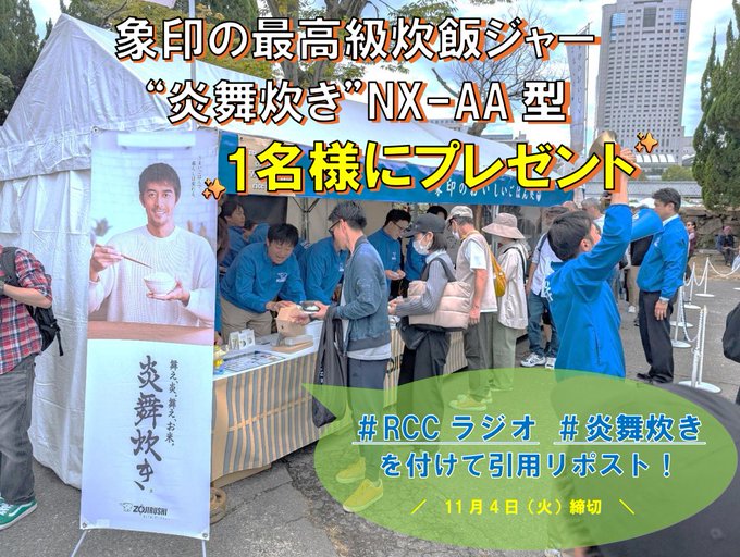 ❷投稿にハッシュタグ「 #RCCラジオ 」と「 #炎舞炊き 」をつけて引用リポスト