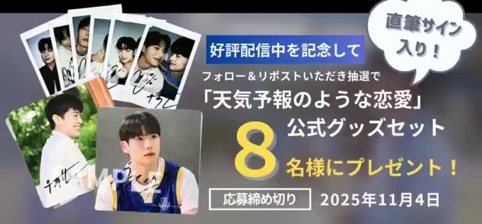 【X懸賞】「天気予報のような恋愛」作品公式グッズセットを8名様にプレゼント