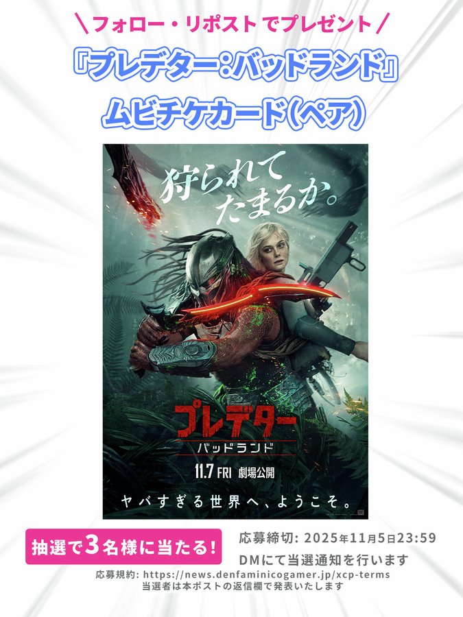 賞品:映画『プレデター:バッドランド』ムビチケカード(3組様)