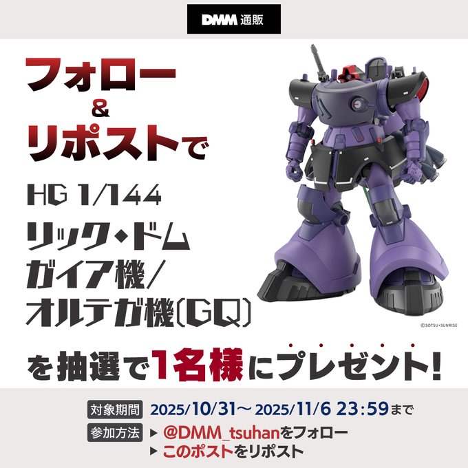 賞品:HG 1/144 リック・ドム ガイア機/オルテガ機(GQ)(1名様)