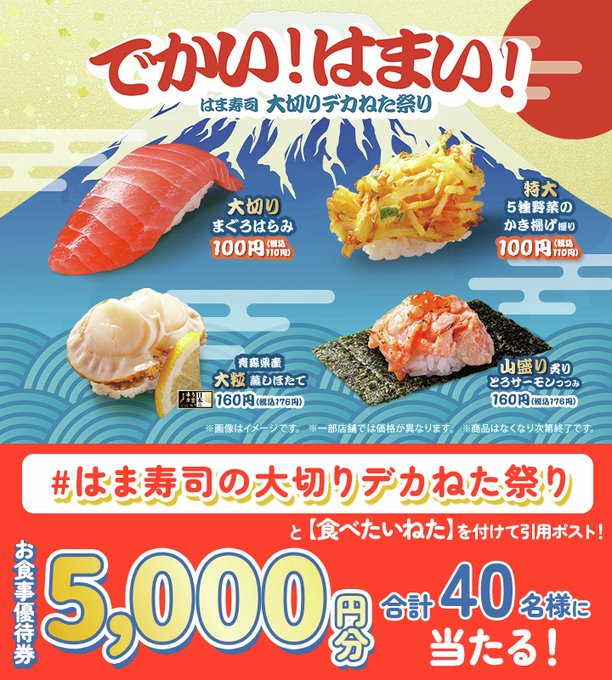 ②【#はま寿司の大切りデカねた祭り】と「食べたいねた」を付けて引用ポスト