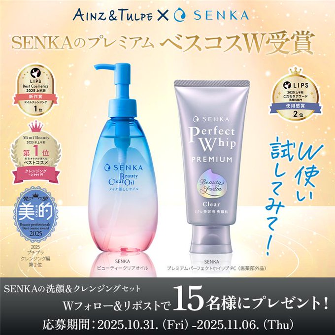 賞品:SENKAの洗顔とクレンジングセット(15名様)