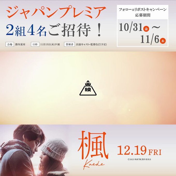 賞品:映画『楓』ジャパンプレミアご招待(2組4名様)