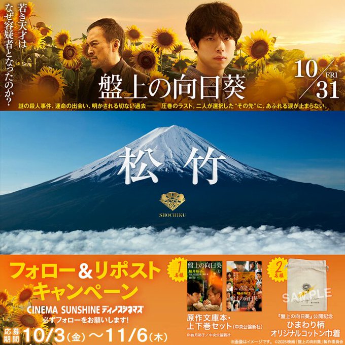 賞品:映画『盤上の向日葵』オリジナルグッズ(3名様)