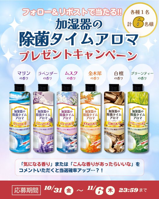 賞品:加湿器の除菌タイムアロマ(6名様)