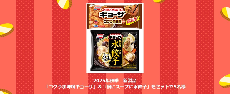 賞品:「コクうま味噌ギョーザ」&「鍋にスープに水餃子」(5名様)