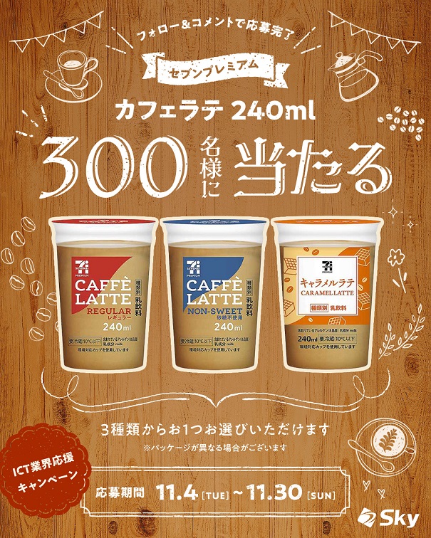 賞品:セブンプレミアム カフェラテ 240ml 無料クーポン(300名様)