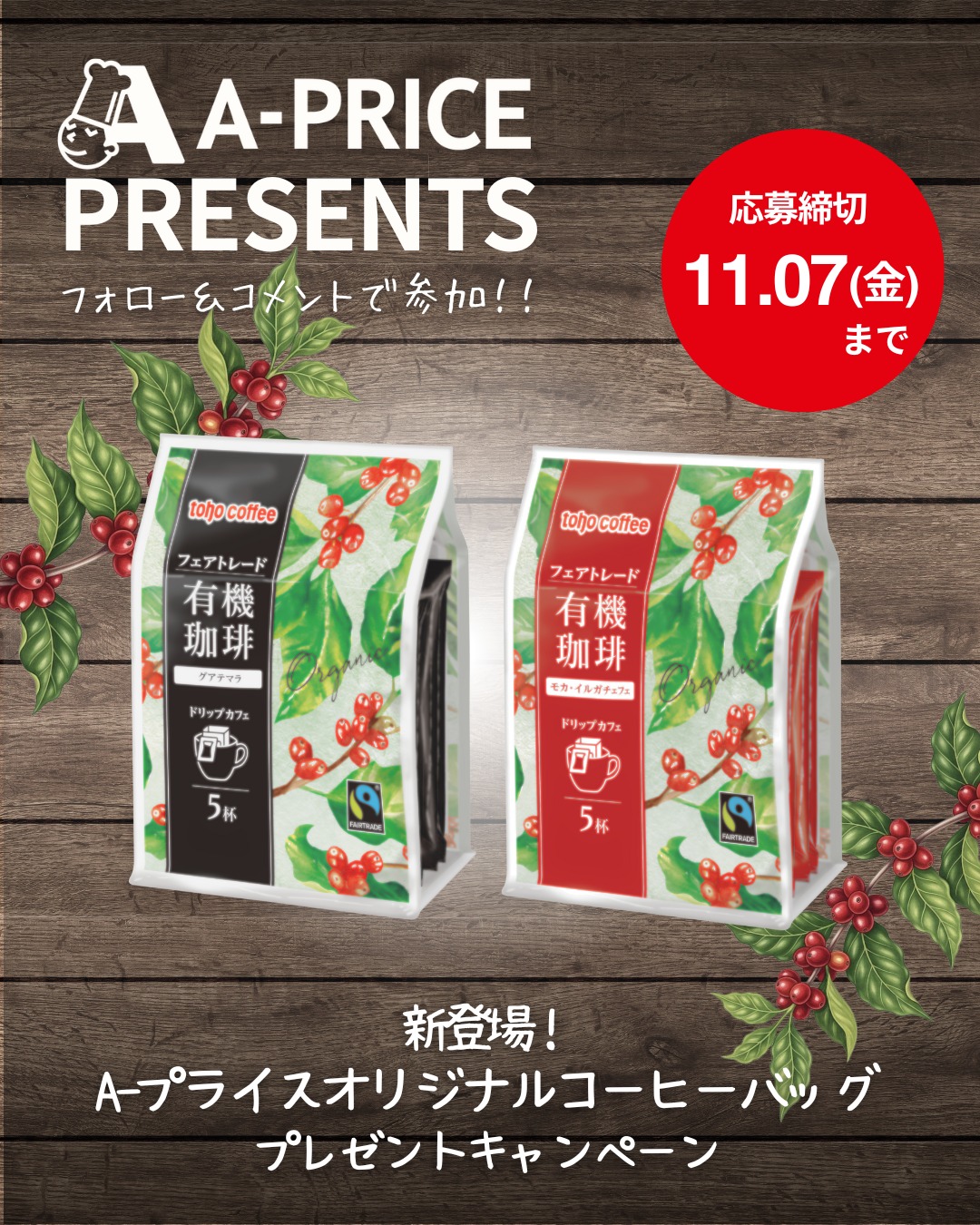 A-プライス‐新登場!A-プライスオリジナルコーヒーバッグ プレゼントキャンペーン