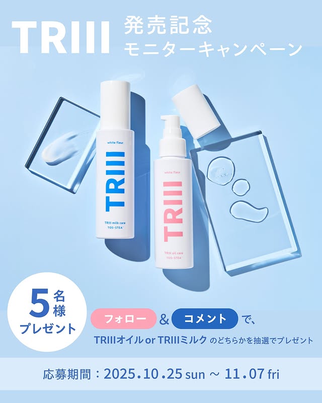 賞品:TRIIIオイル or TRIIIミルク(5名様)