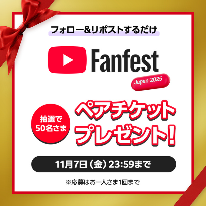 【X懸賞】YouTube Fanfest Japan 2025 ペアチケットを50名様にプレゼント