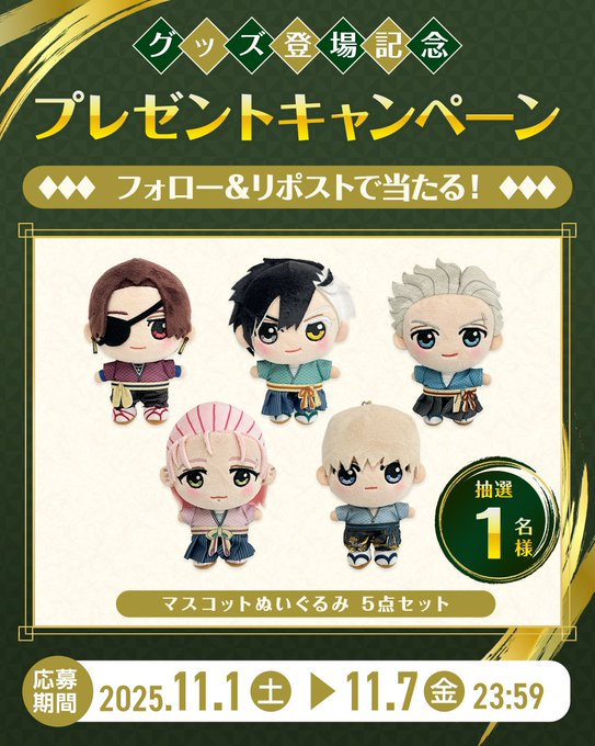 賞品:マスコットぬいぐるみ全5種セット(1名様)