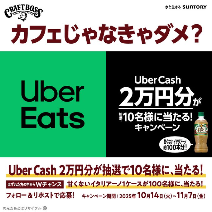 【X懸賞】Uber Cash2万円分、甘くないイタリアーノ 1ケースを合計110名様にプレゼント