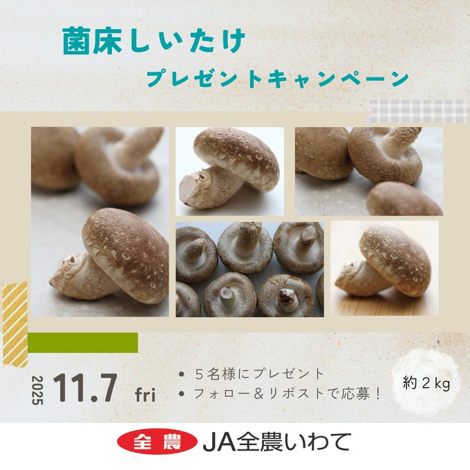 賞品:岩手県産「菌床しいたけ」約2kg(5名様)
