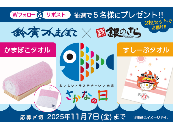 賞品:かまぼこタオル&すしーぷタオル(5名様)