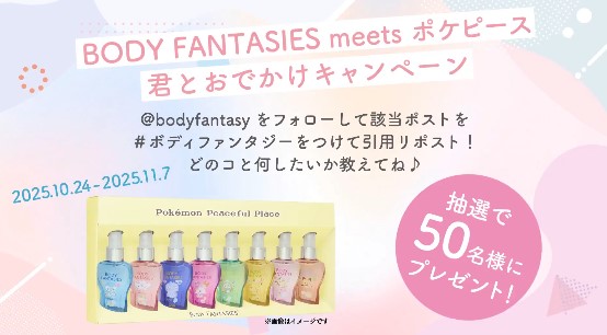 賞品:ポケピースデザインのボディファンタジーが入ったスペシャルBOX(50名様)