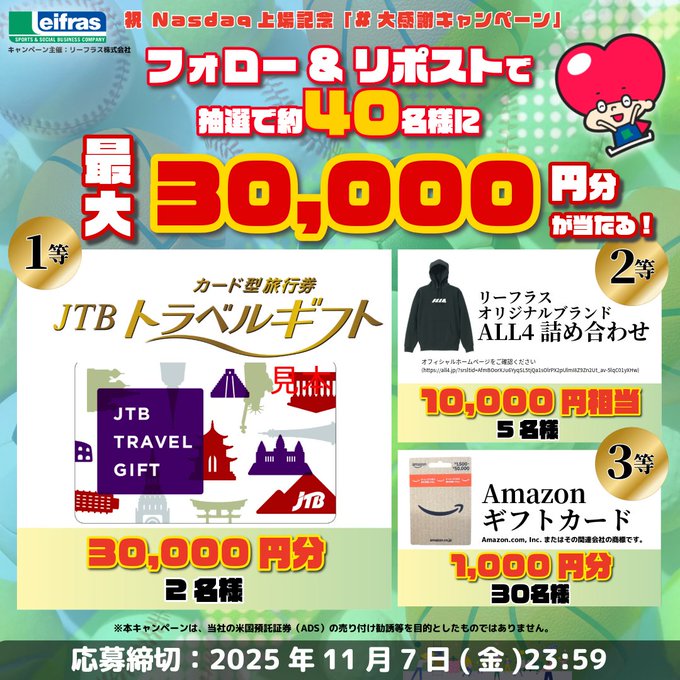 リーフラス株式会社‐祝Nasdaq上場!#大感謝キャンペーン