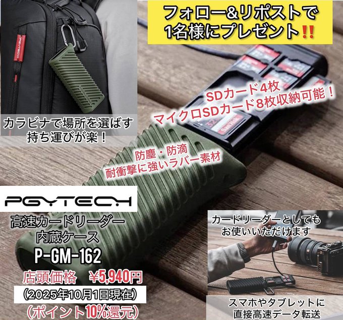 賞品:PGYTECH「CreateMateカードリーダー内蔵ケース」(1名様)