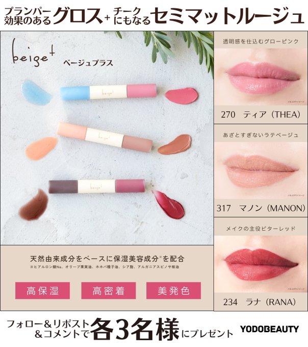 賞品:beige+ ルジュロス「270 ティア / 317 マノン / 234 ラナ」(9名様)