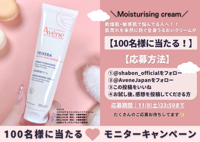 賞品:アベンヌ トリクセラ モイストスキンバリア クリーム(100名様)