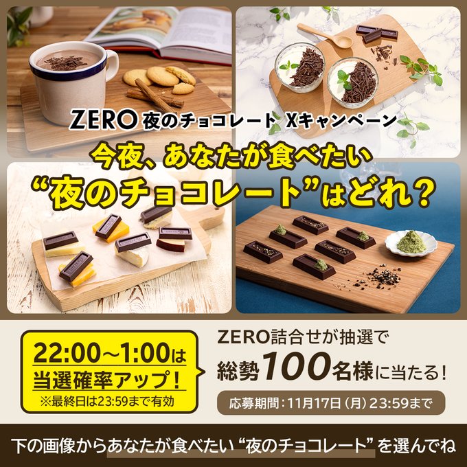 【毎日・X懸賞】ZERO商品の詰合せを100名様にプレゼント 2025.11.06 2025.11.05ロッテ‐ZERO夜のチョコレートキャンペーン 賞品:ZERO商品の詰合せ(100名様) 締切:2025年11月17日(月)食べたいメニューを選んで投稿すると、抽選でZEROの詰合せをプレゼント🎁※詳細はキャンペーンページにてご確認ください。応募はこちらから