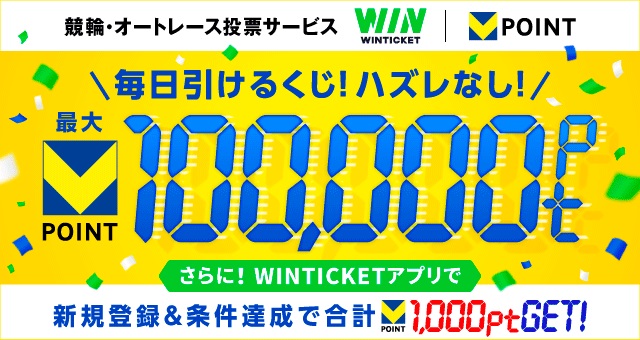 【毎日応募】Vポイント最大100,000ptがその場で当たる!