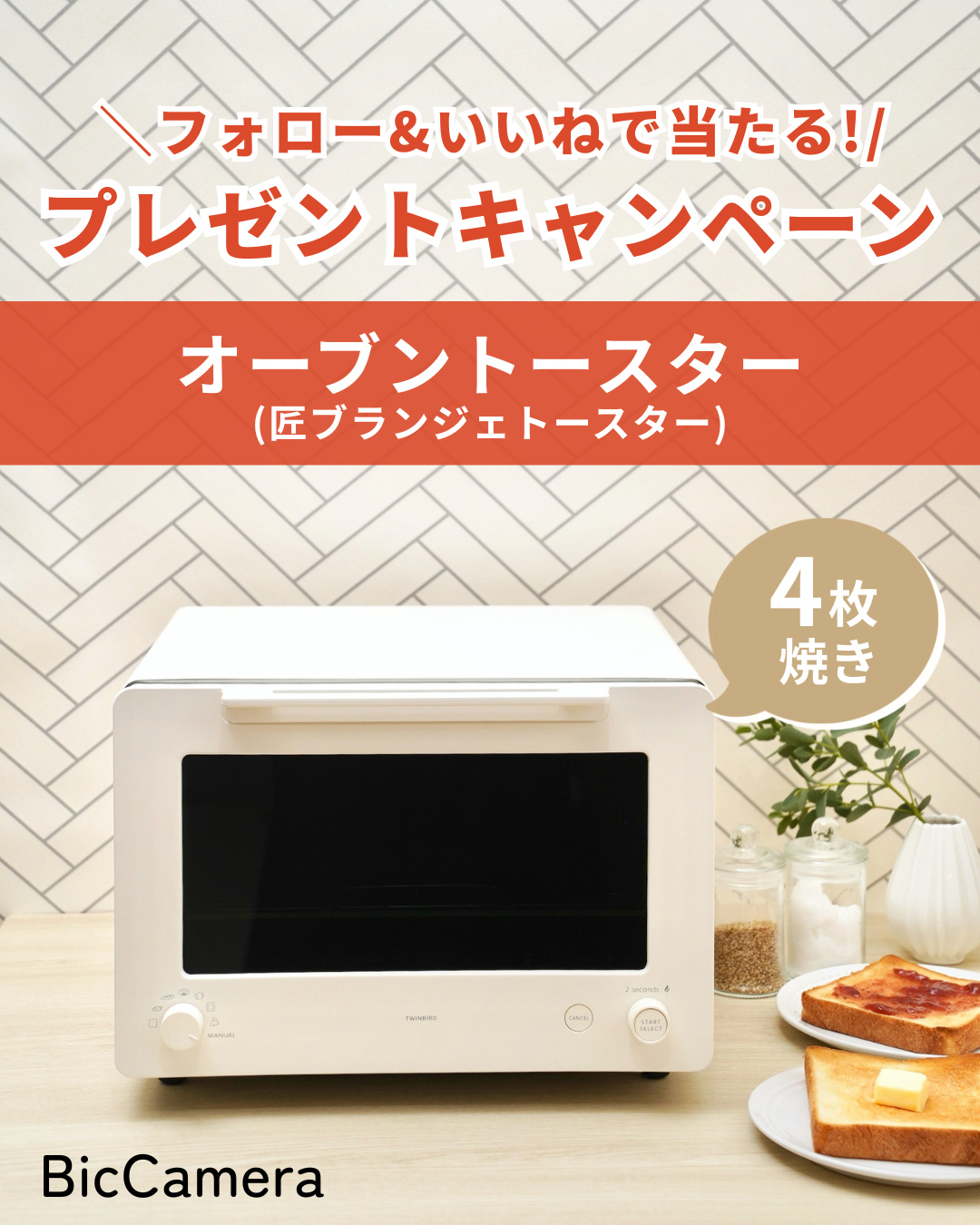 賞品:ツインバード オーブントースター 匠ブランジェトースター PLUS(2名様)