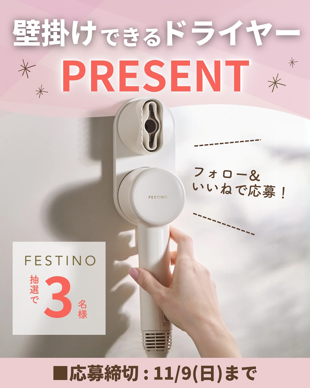【Instagram懸賞】フェスティノ ツヤニュアンス ドライヤー&専用スタンドを3名様にプレゼント