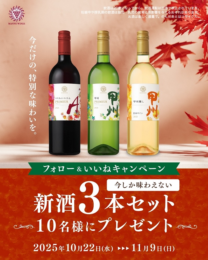 賞品:マンズワイン 2025年新酒3本セット(10名様)