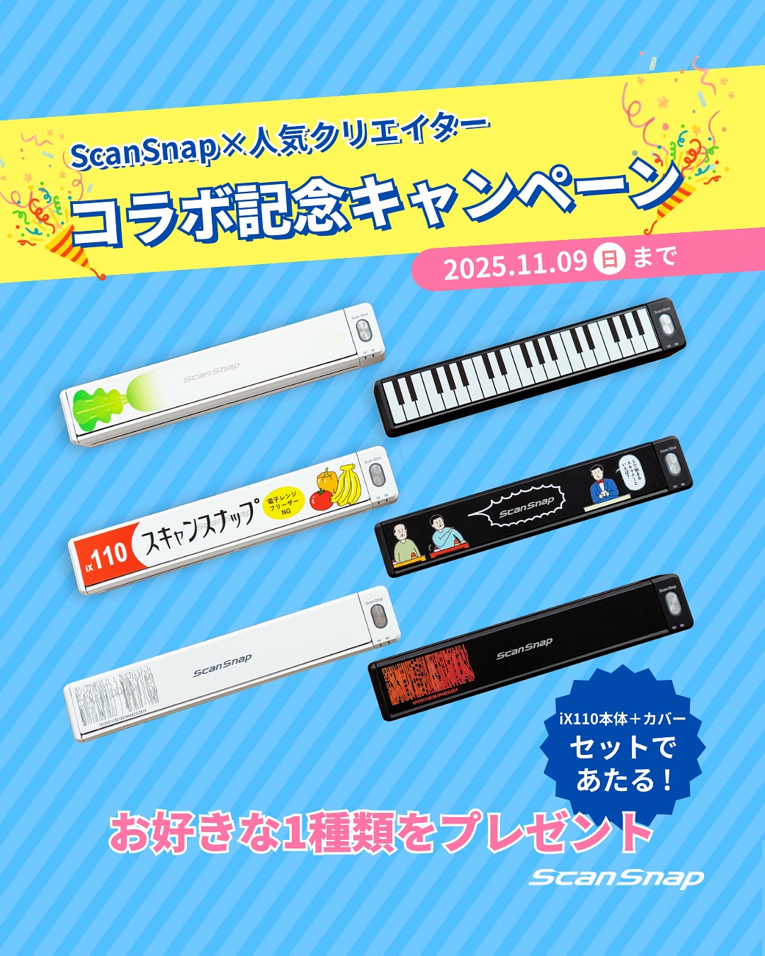 賞品:ScanSnap iX110本体+お好きなデザインベゼルのセット(1名様)