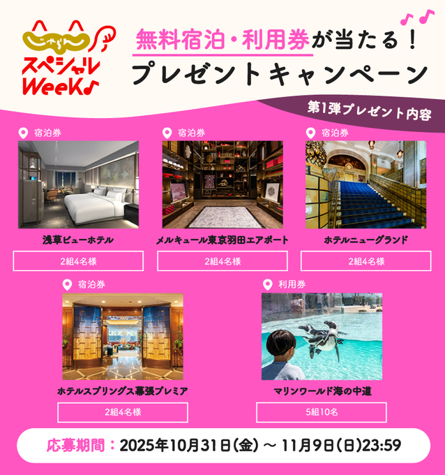 【X懸賞】無料宿泊券・利用券を合計13組様にプレゼント