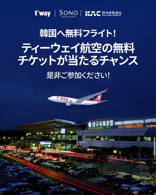 賞品:ティーウェイ航空で行く!東京発ソウル行きの往復航空券(2名様)