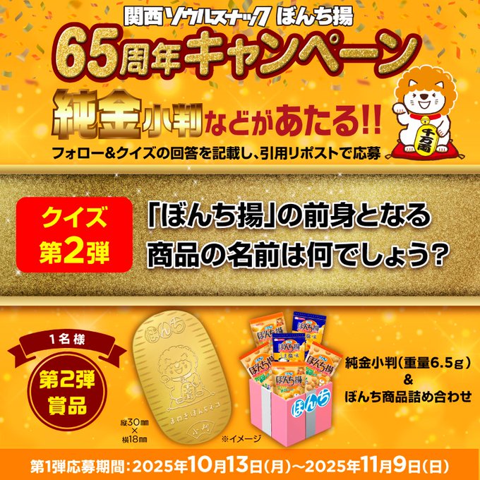 賞品:“ぼんち純金小判” (6.5g)&ぼんち商品やグッズ(1名様)